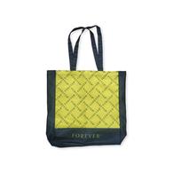 Practical and stylish fabric tote bag in yellow/black color with a repeating "FOREVER" pattern. It features comfortable long handles for easy shoulder carry and a spacious interior for everyday use. Perfect for shopping, outings, and daily activities.